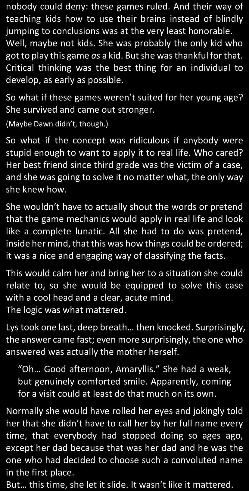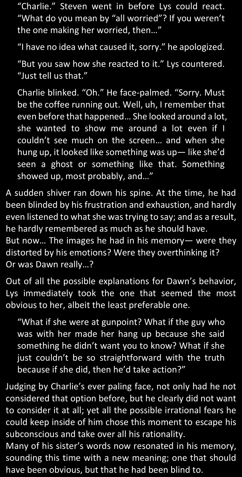 Lys shuddered. Dawn’s case followed this exact description too. She strongly hoped against it, but soon her rational mind caught up with her emotions and crushed her with the most obvious conclusion: