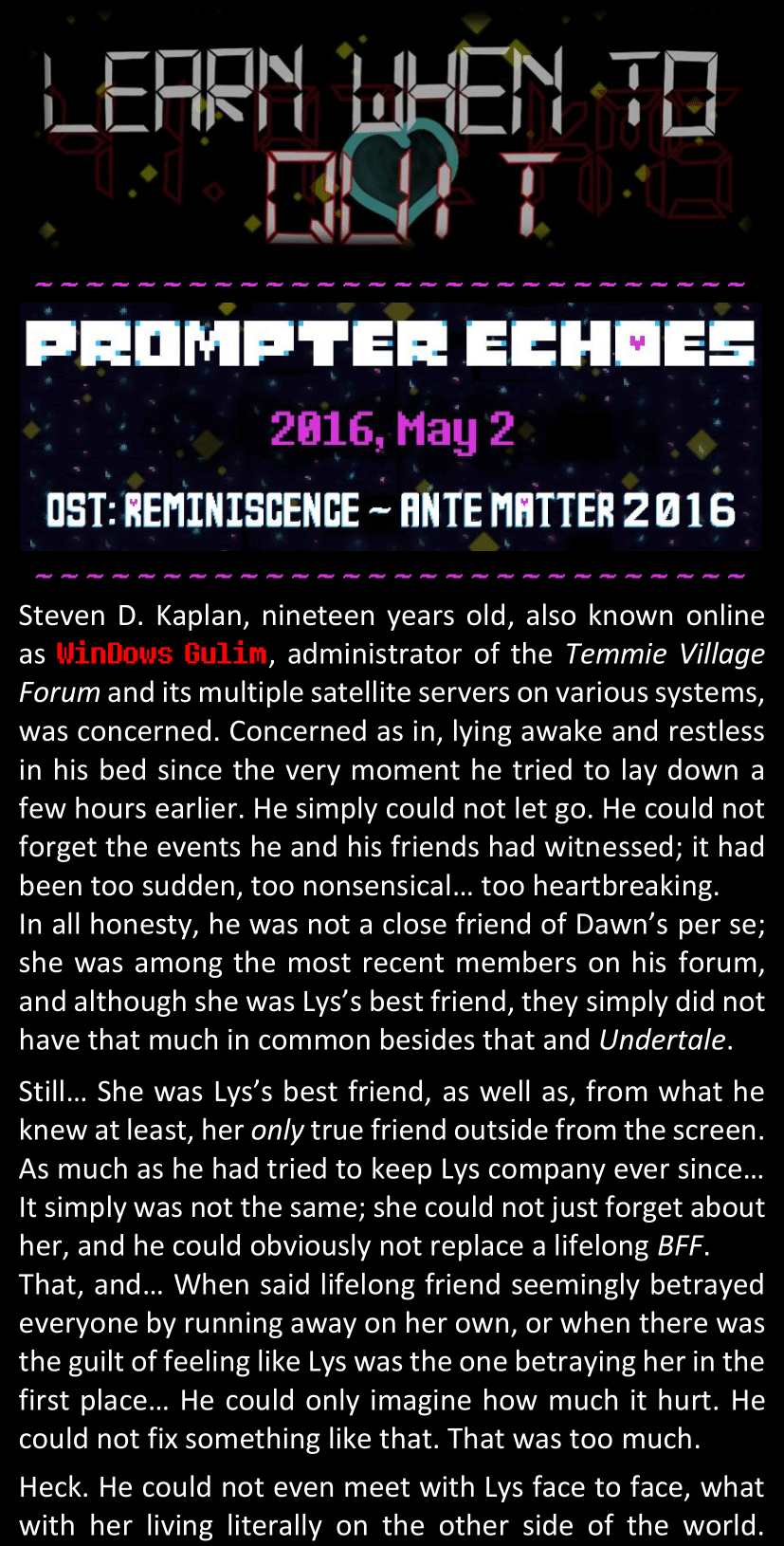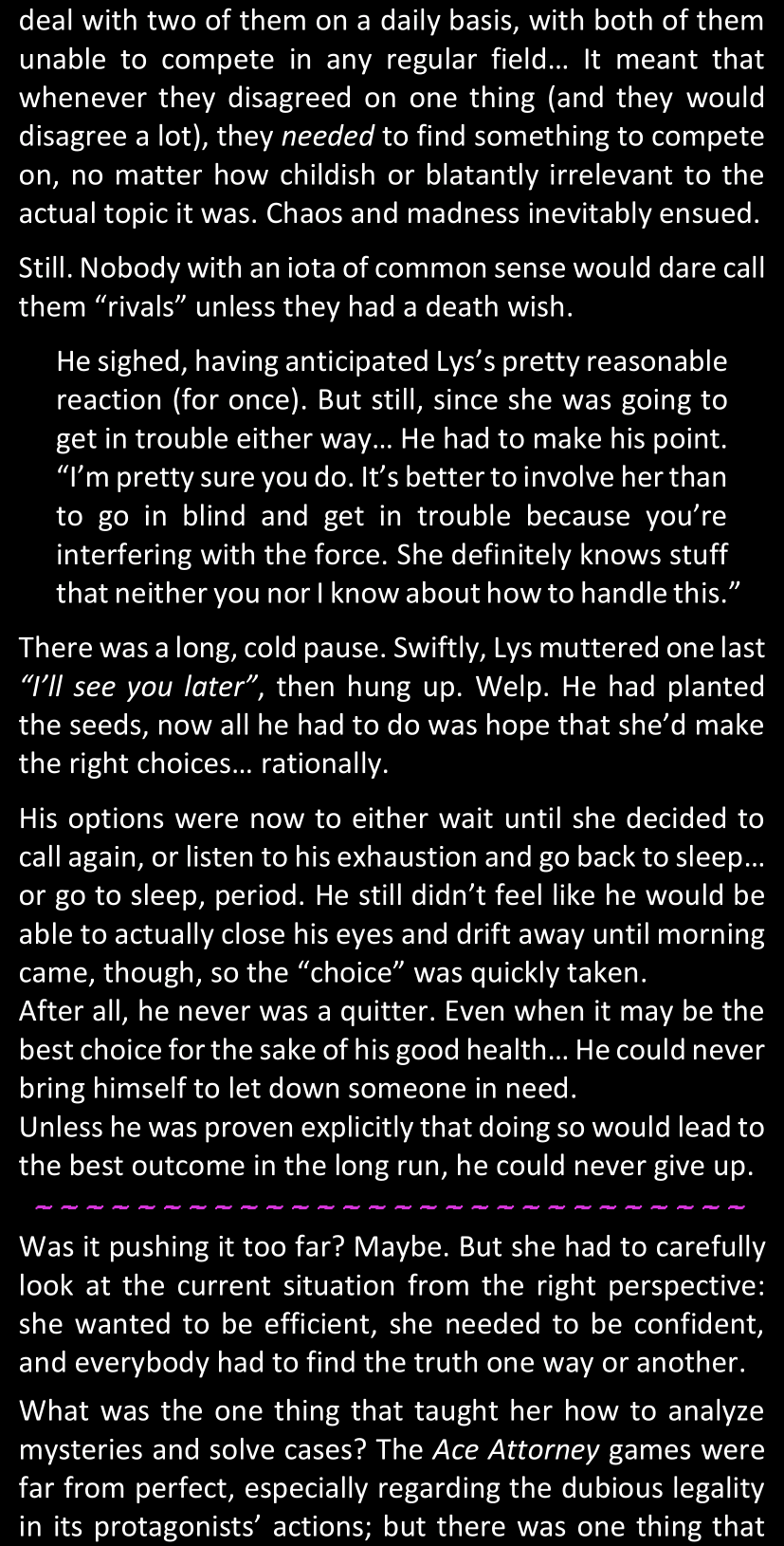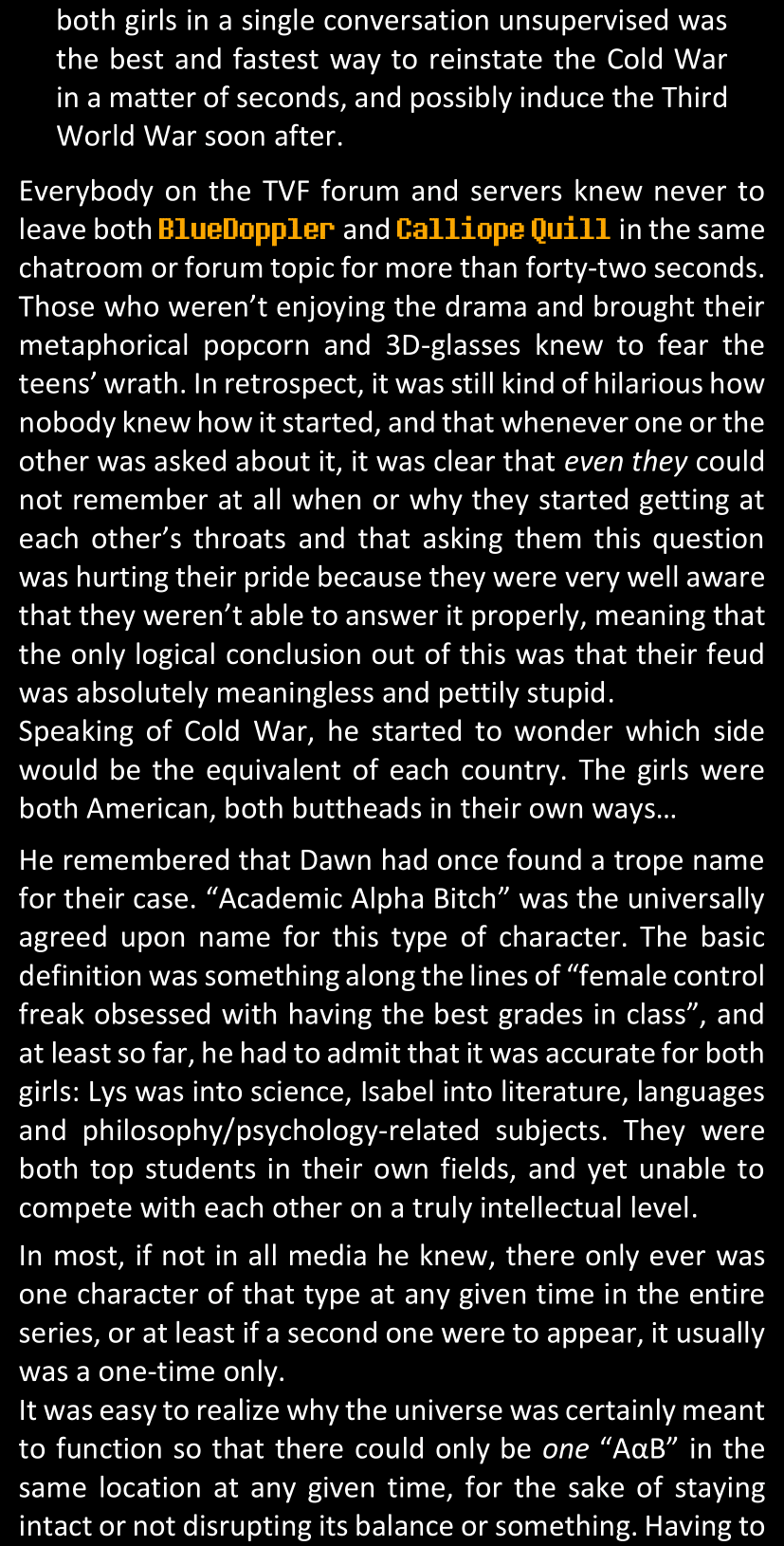 - An overly detailed doc dedicated to just LWtQ's backstory, which will only be revealed once I'm done with the summaries