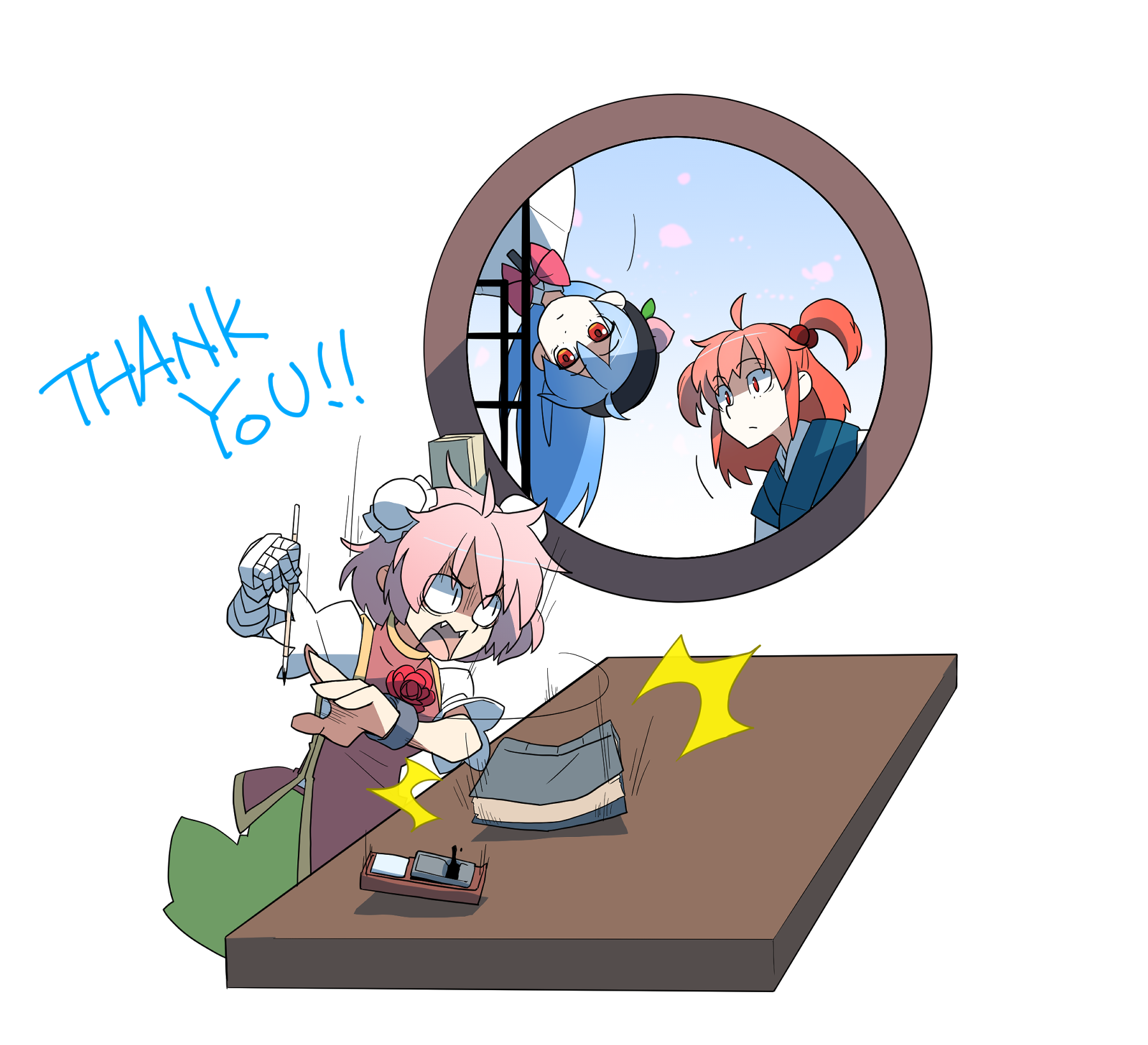 After Reimu finished, I sat frozen for a moment, looking down at my hands in my lap. I only moved them when I realized they were getting wet. Reimu noticed at the same time. She hugged me. I began sobbing when I felt her tears on my back. We were like this for a long time.