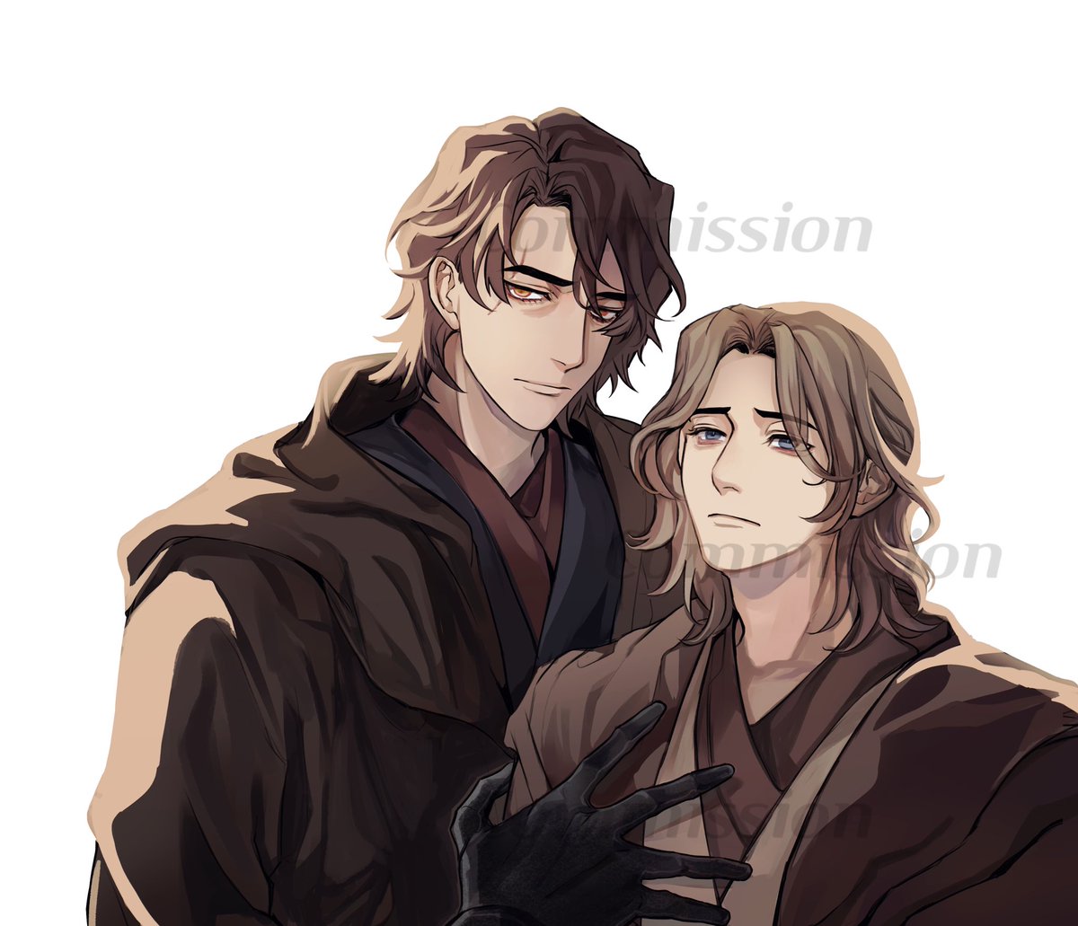 “Anakin, please—” Obi-Wan felt reckless in his sudden need to be alone. His palms met Anakin’s chest weakly, the Force a soft thing behind his hands. Anakin didn’t budge. No, if anything, he became more aggressive. Those hands wrapped around him entirely, holding him in an embrace that he wanted for so long but now couldn’t stand.