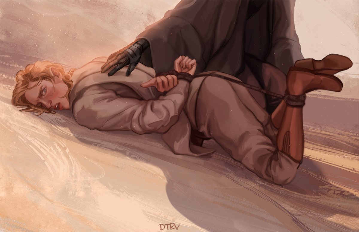 Vader dragged his dirty Jedi out of the room and directly up to where he lived. They were in his cantina on Tatooine, converted into something sinister behind closed doors. There was a lower level, where Vader conducted all his illicit business, including lock up pretty little Jedi. The ground floor was what everyone saw: an upscale bar in a shitty part of town, and then the top floor was where he lived. Three levels all belonging to him in a town that had tried to raise him as a slave.