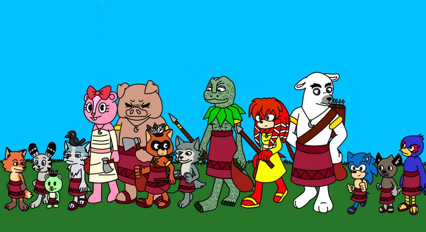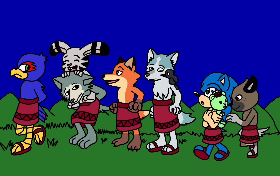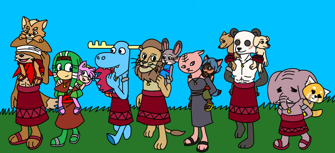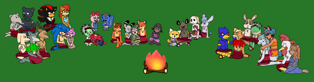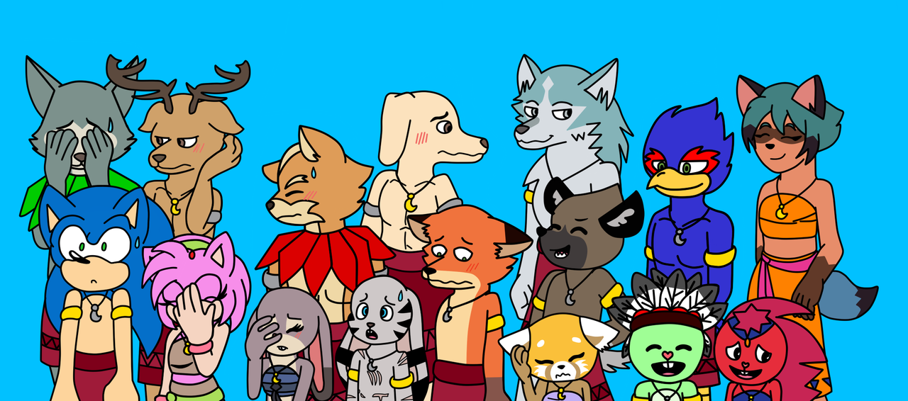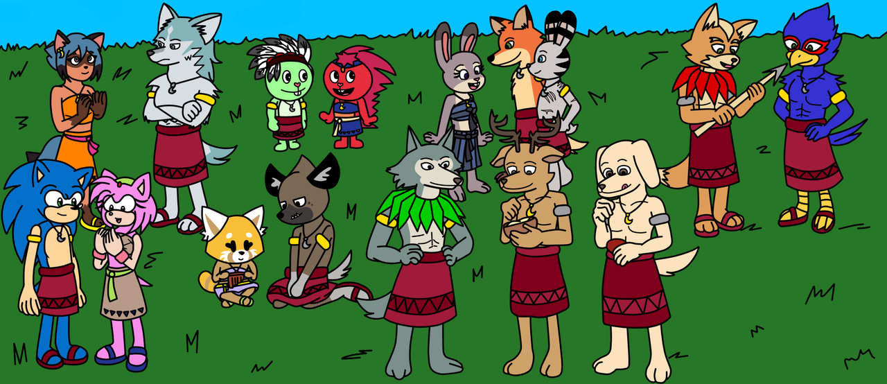This is a collab comic that I made with my friend sirinathehedgehog. The idea for this comic came to mind based on an idea I had for a fic from another fandom where it would show what it would be like if the characters of a fandom x lived in a tribal environment. Also, this is a crossover comic between Sonic The Hedgehog, Star Fox, Happy Tree Friends, Zootopia, Aggretsuko, Beastars, and BNA Brand New Animal. Although there are other fandoms included here.