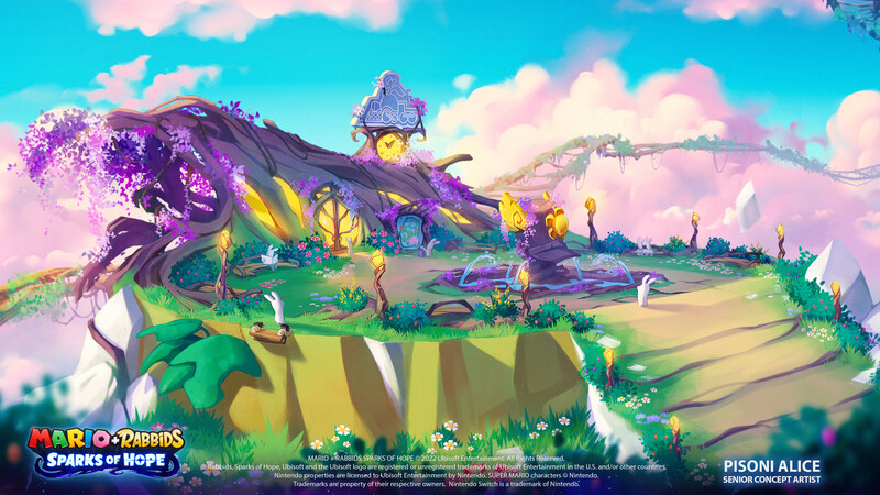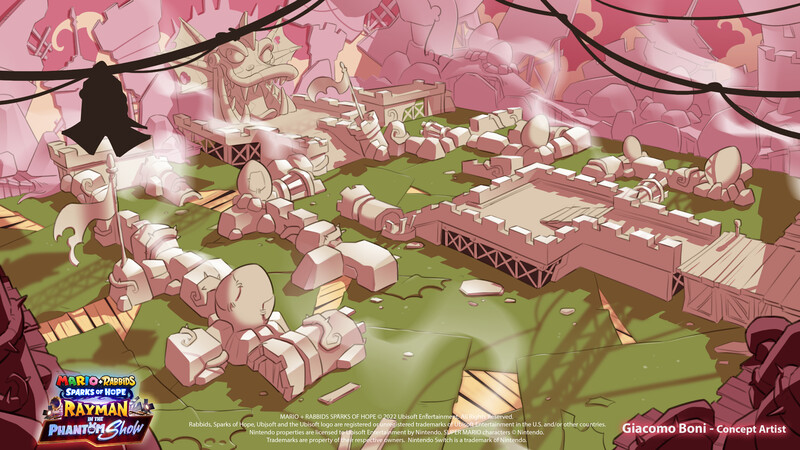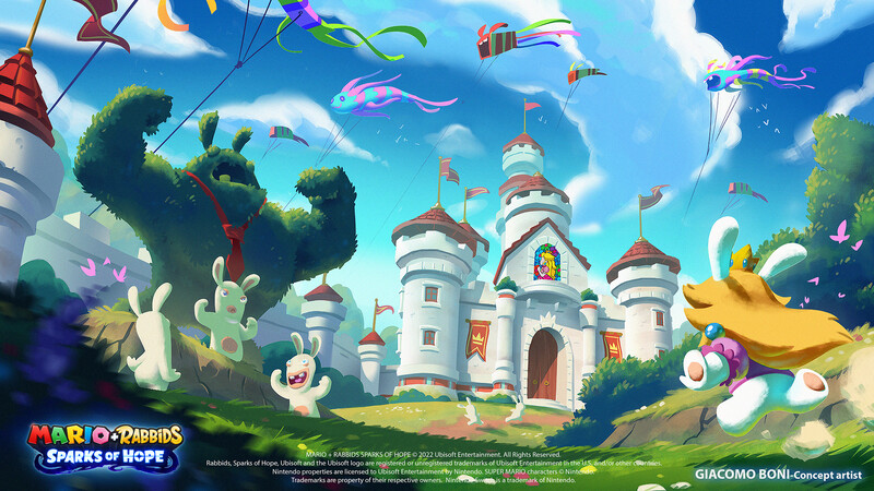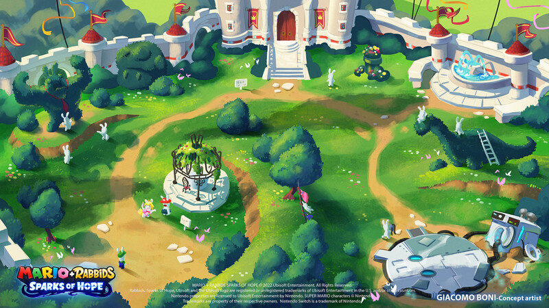Concept art depicting Peach’s castle from Mario plus Rabbids Sparks of Hope