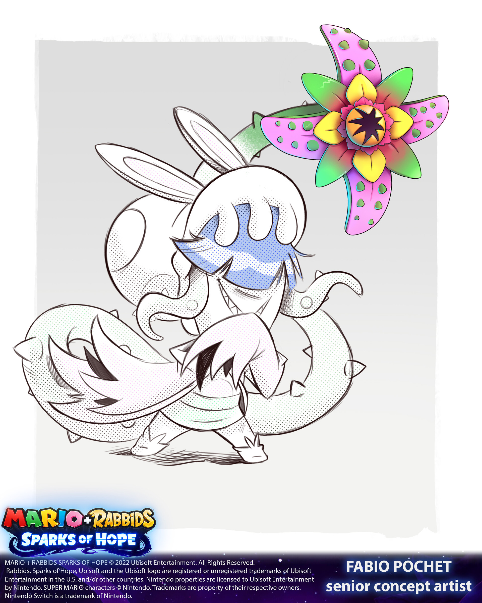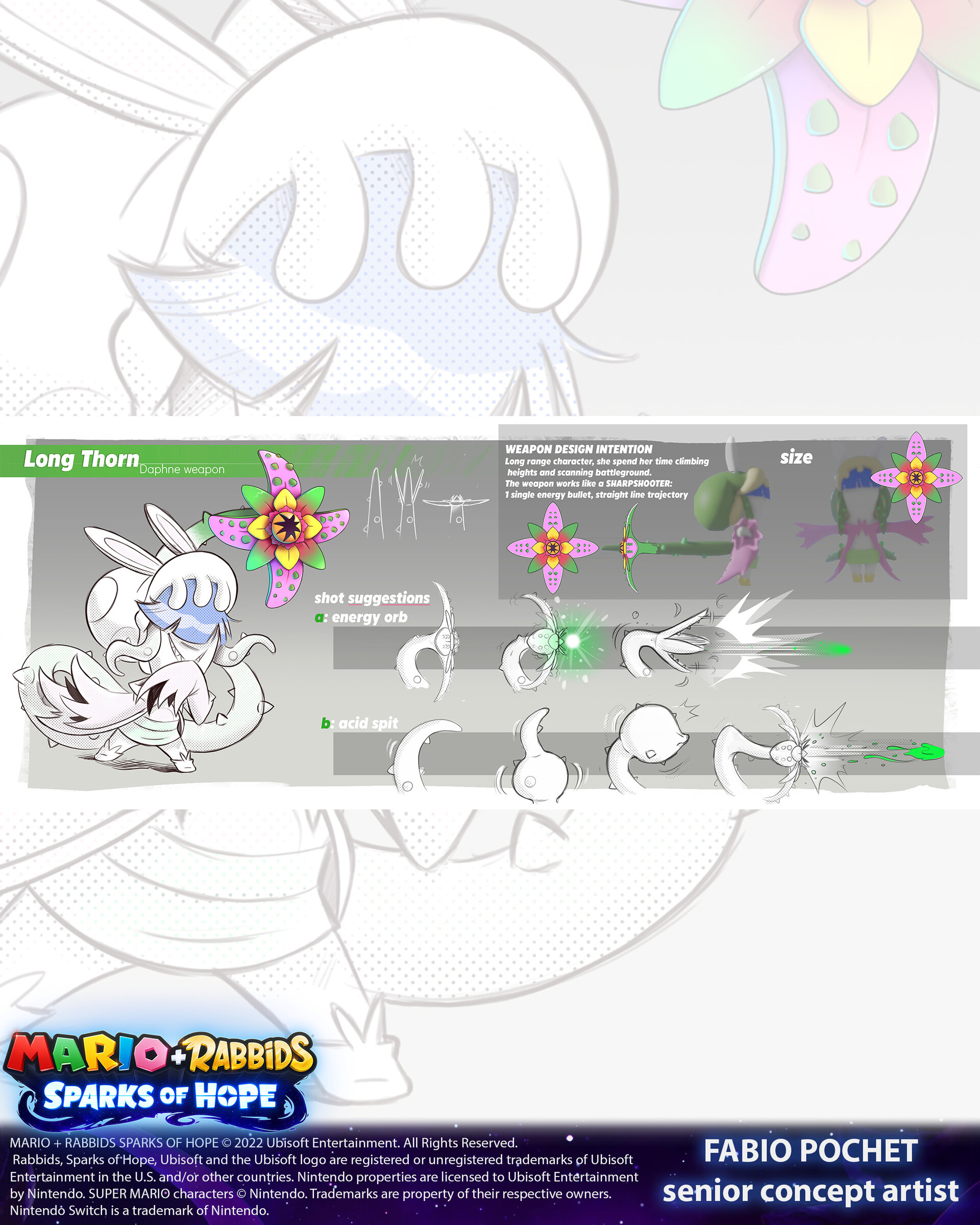 Concept art of Daphne from Mario plus rabbids Sparks of hope.