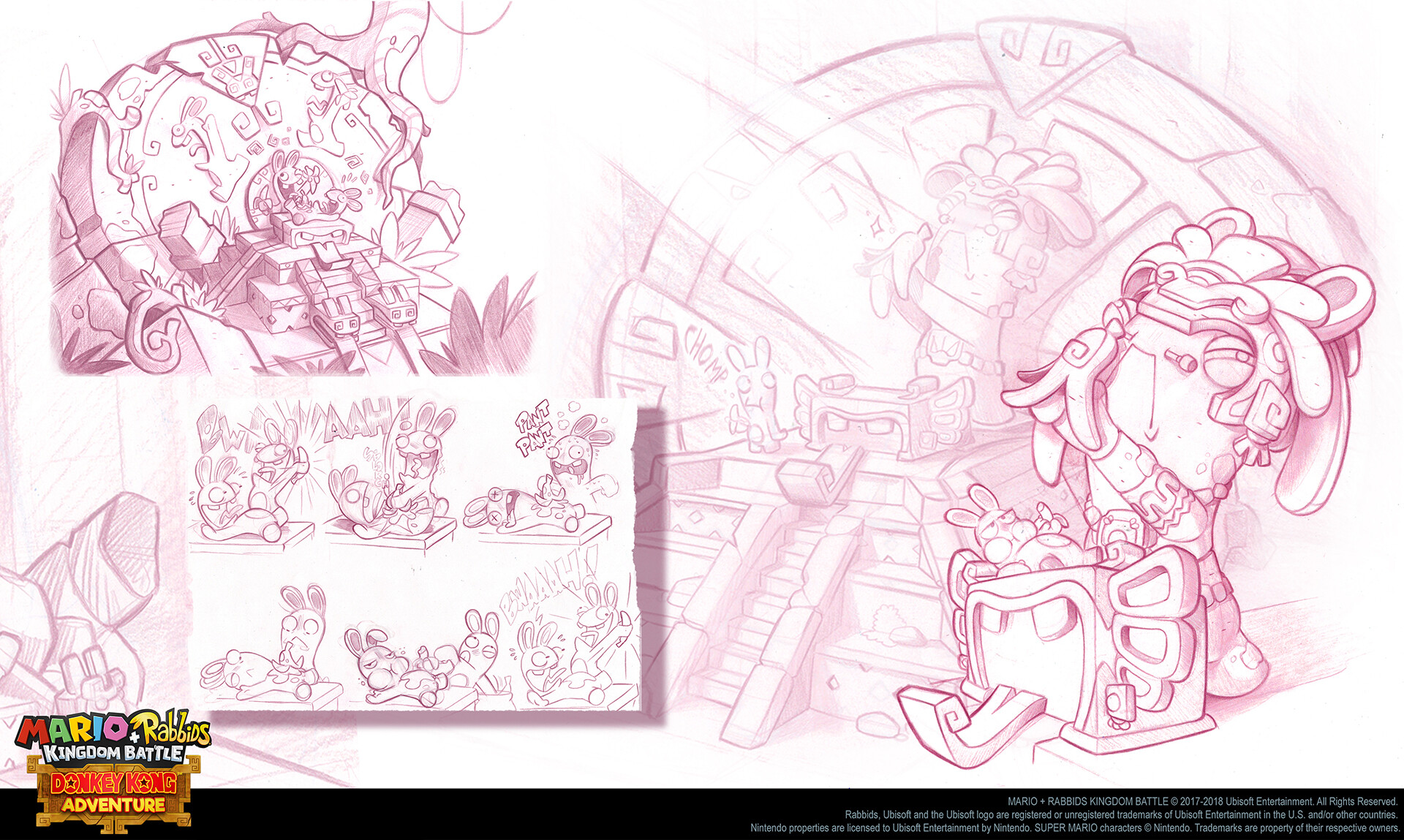 Concept art from the Hidden Kong Temple levels from Donkey Kong tropical freeze. All of these show all the different enemies from there respective worlds.
