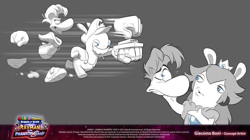 Concept art of playable rabbids From Mario plus rabbids sparks of hope.