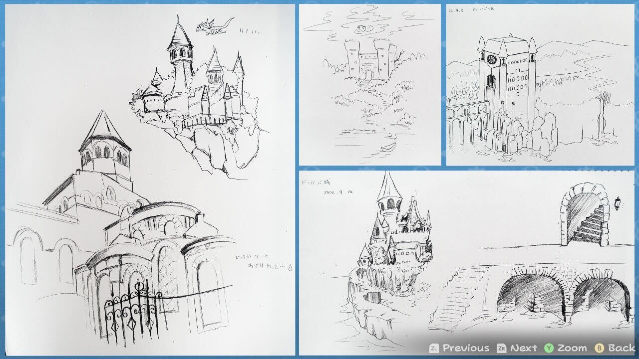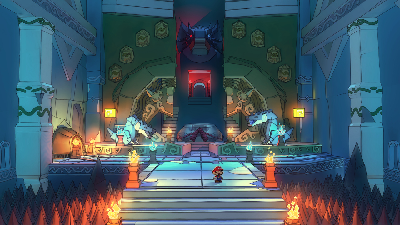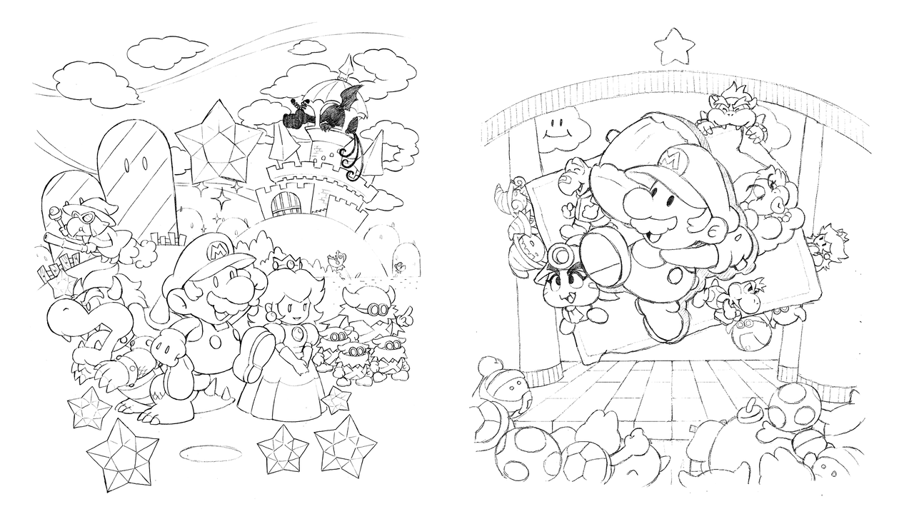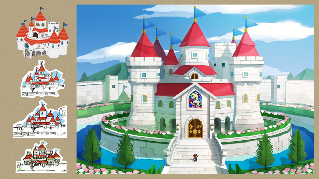 Concept art depicting Chapter 1 Castle and dragons from the Paper Mario The Thousand Year Door remake.