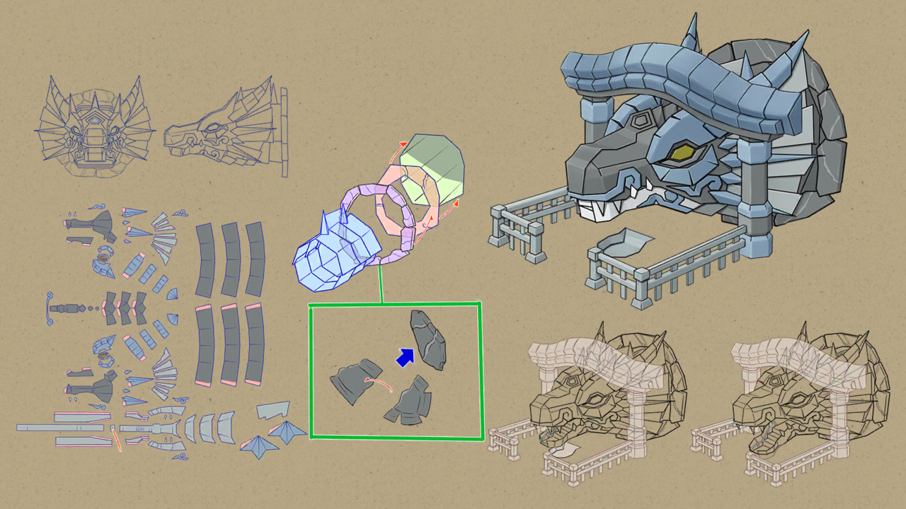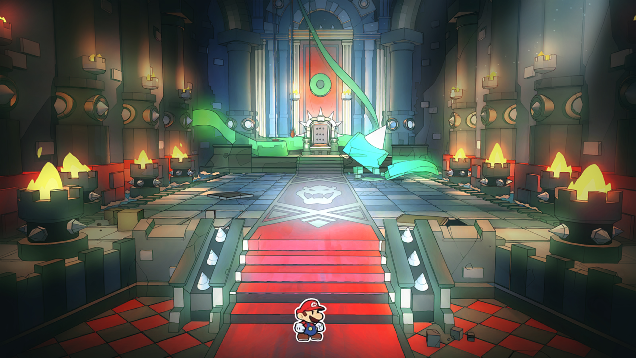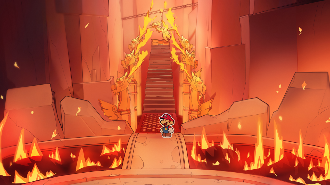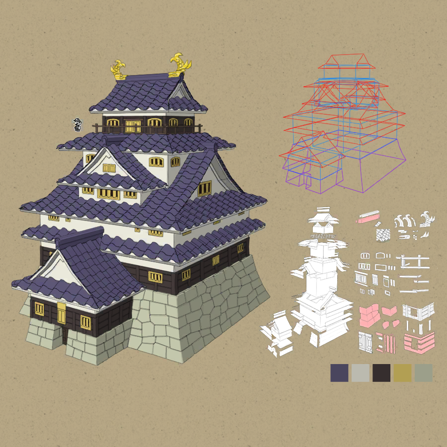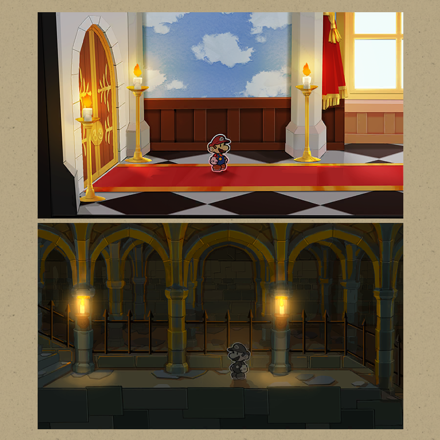 Concept art depicting Chapter 1 Castle and dragons from the Paper Mario The Thousand Year Door remake.