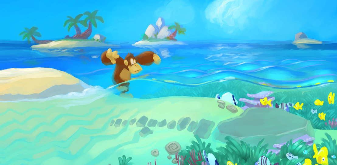 Concept art of Sea Breeze Cove. from Donkey Kong tropical freeze.