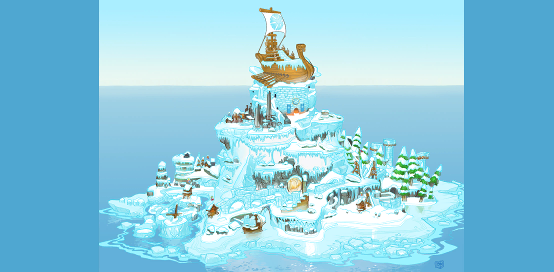 Concept art of the snow kingdom from Super Mario odyssey