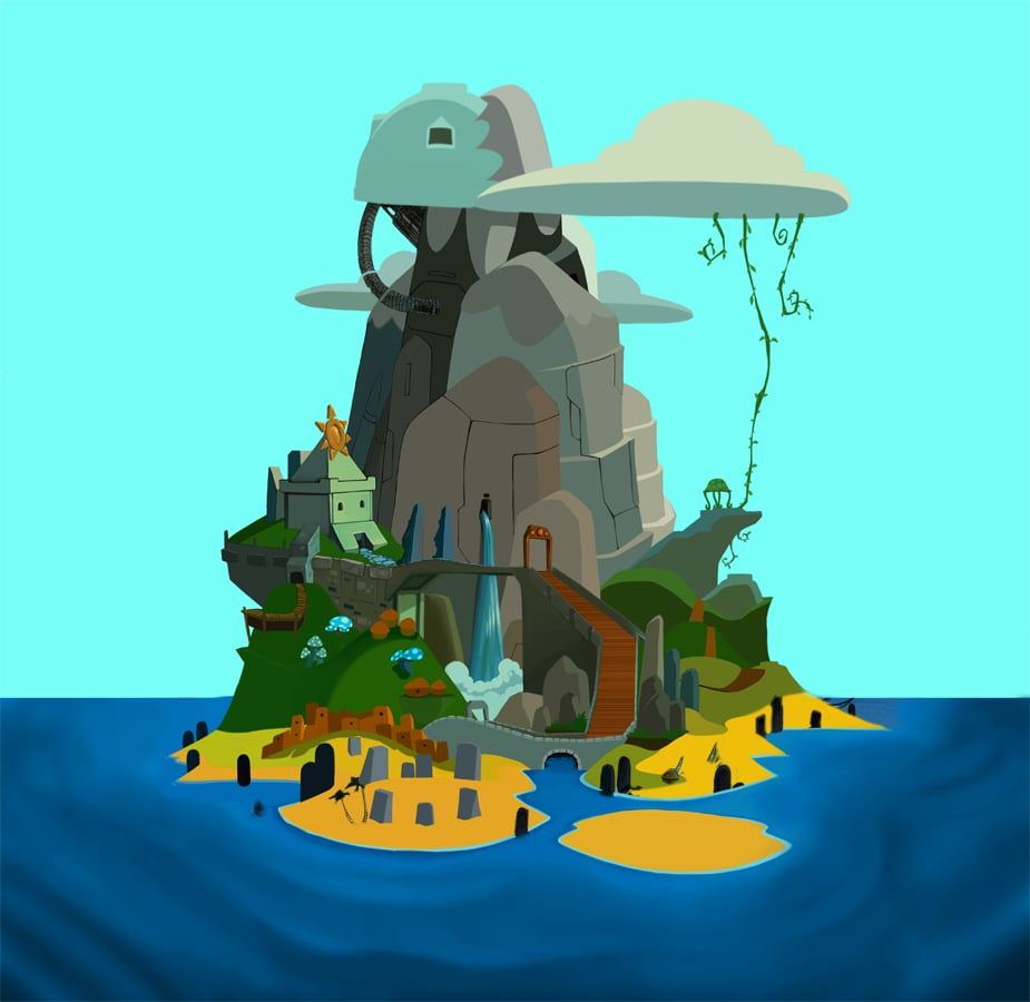 Concept art of Donkey Kong Island from Donkey Kong tropical freeze.