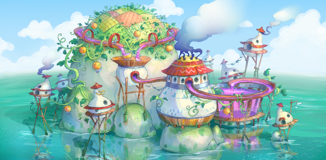 Concept art of The Luncheon Kingdom from super mario odyssey