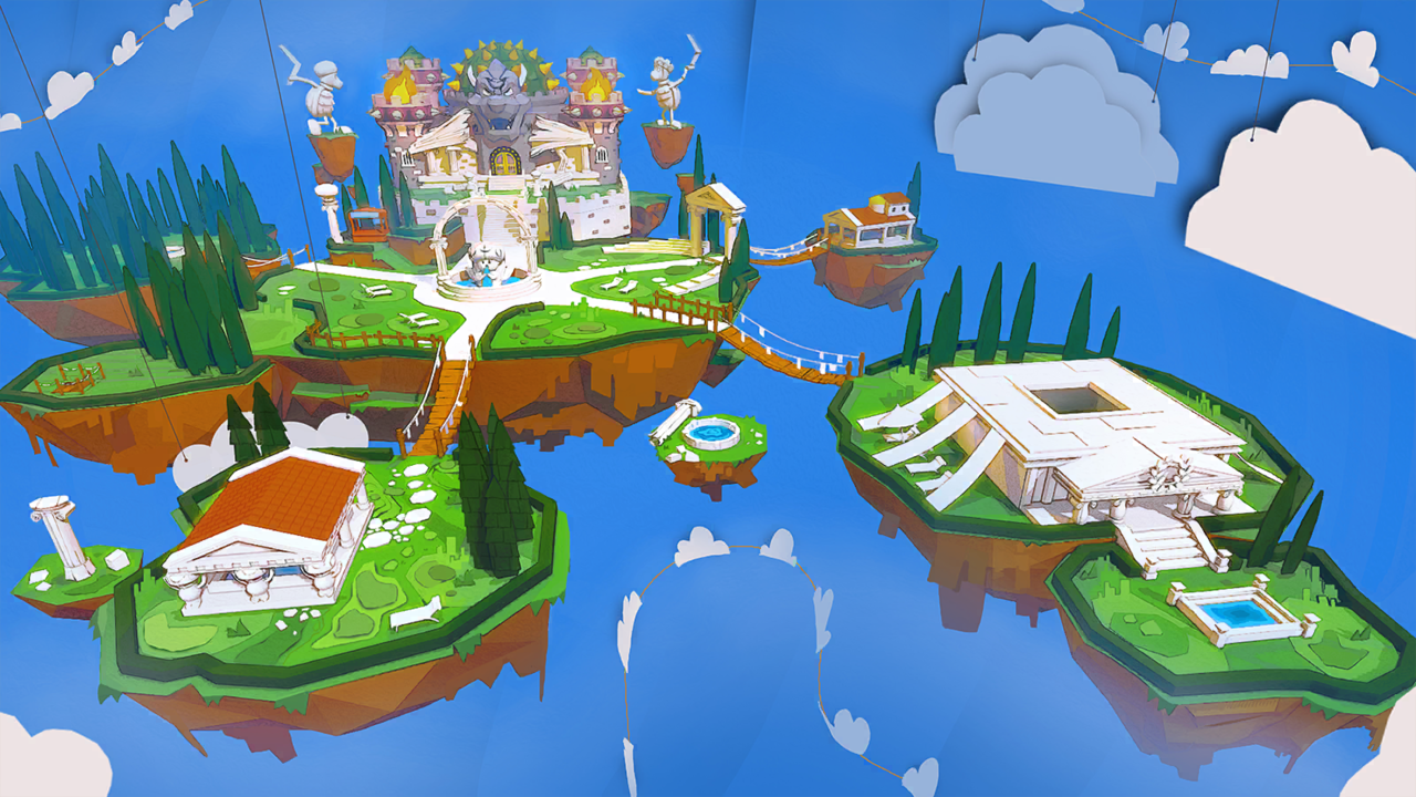 Concept art of the cloud kingdom from Super Mario odyssey.
