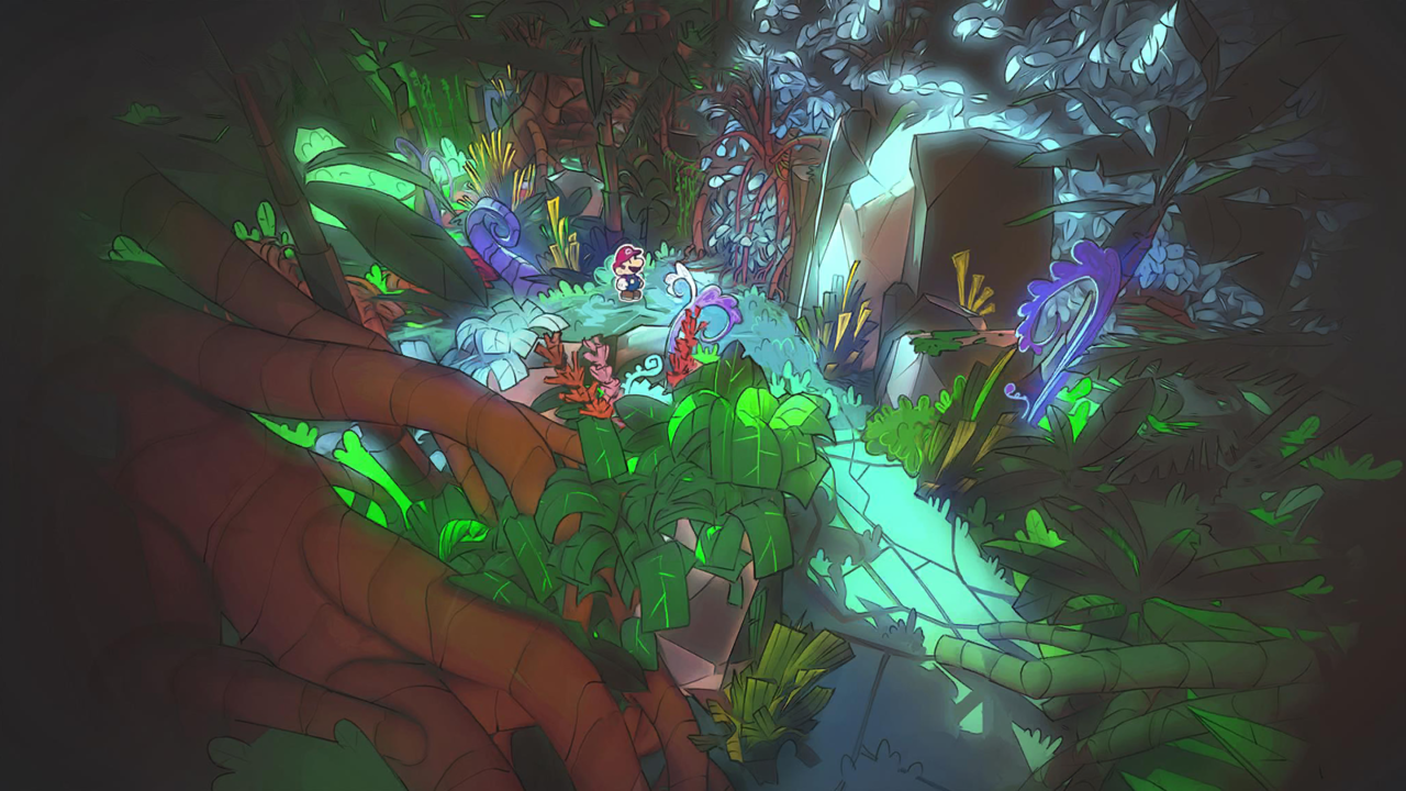Concept art depicting Chapter 2 The Great Boggly Tree from the Paper Mario The Thousand Year Door remake.
