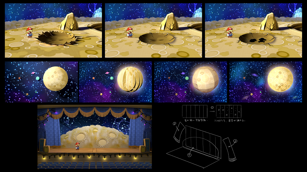 Concept art depicting Chapter 7: Mario Shoots the Moon from the Paper Mario The Thousand Year Door remake.