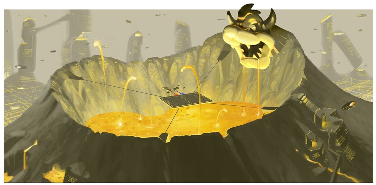 Concept art for Bowser’s Kingdom from Sper Mario Odyssey.