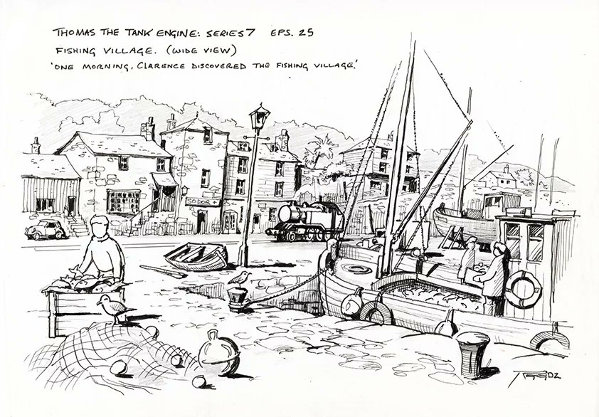 Concept art for knapford Station and Docks. From Thomas.