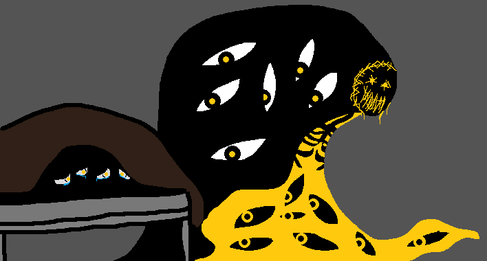One of the deceased Exorcists lumbered close. “This a hallucination to you?” She lifted her mask, exposing a skull with rotten muscle and sinew barely clinging to it, a single rolling eye glaring wildly. The stench, oh dear God the stench… Lute’s mirror self held the blade of her sword against her throat, the stitched grin growing impossibly wide.