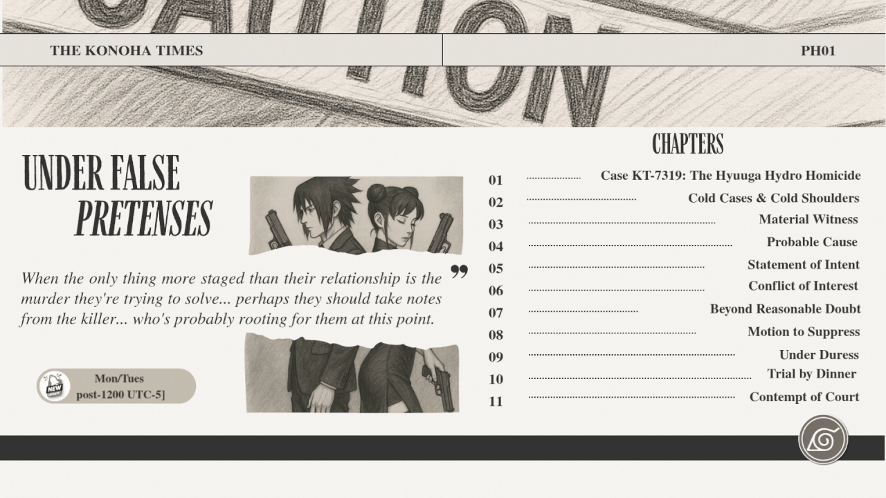 The midday sun glared off the precinct's glass doors as Tenten shouldered her way inside. A cardboard tray wobbled in her grip, two steaming coffees threatening to spill over. One black and bitter, the other sickeningly sweet, loaded with enough sugar to tempt even the most stubborn Uchiha. She'd bribed enough colleagues to know caffeine opened doors faster than formal requests.