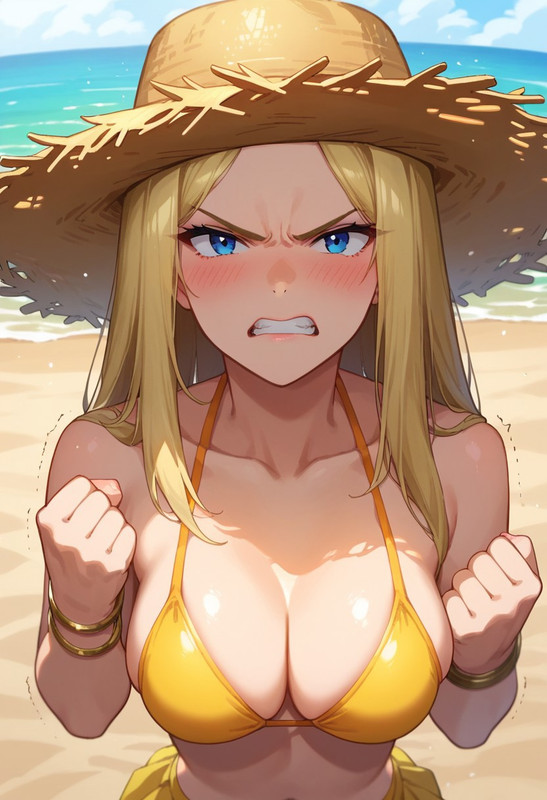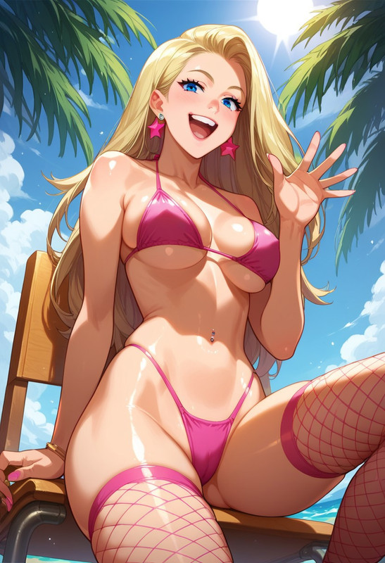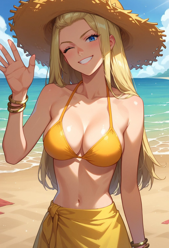 She materialized on a tropical island. The sun was at its zenith, and the whole scenery was too beautiful to be real. The blonde girl immediately changed her outfit to a cute yellow bikini top with a matching skirt and a straw hat. The most popular guys from school were going to be there, and she wanted to make an impression. Peter noticed her arrival and teleported to her.