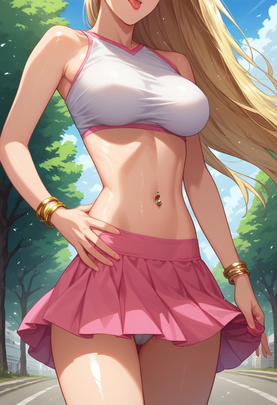 The trio started laughing the moment they saw her. Kate anxiously checked her outfit — a white crop top and jeans. It was rather tight, because it'd be a shame to hide a body as perfect as hers under some baggy, unfashionable clothes, but she wasn't showing off more than she wanted. Still, they seemed to think there was something funny about her. She was slightly intrigued by what it was, so she decided to ask them politely.