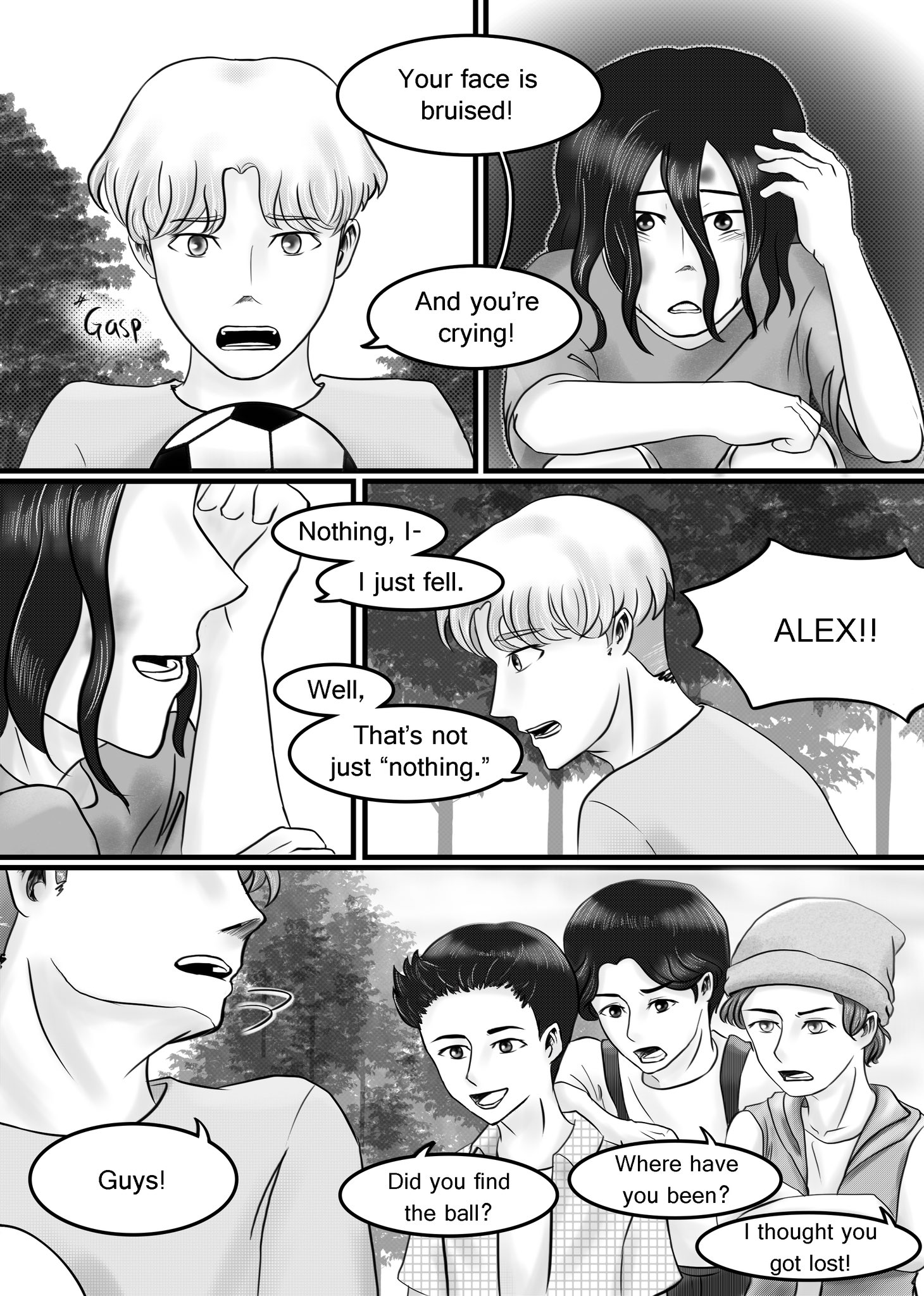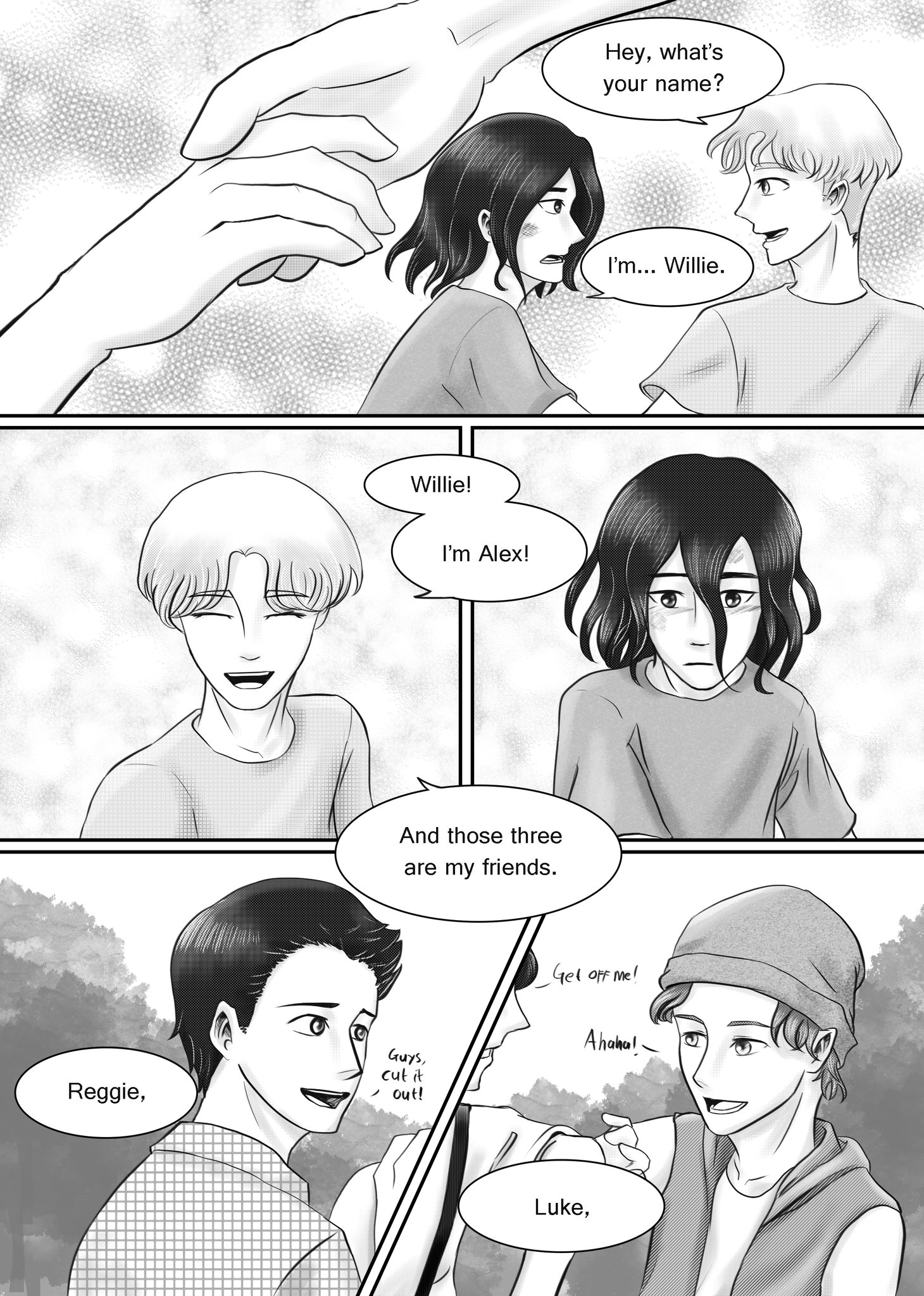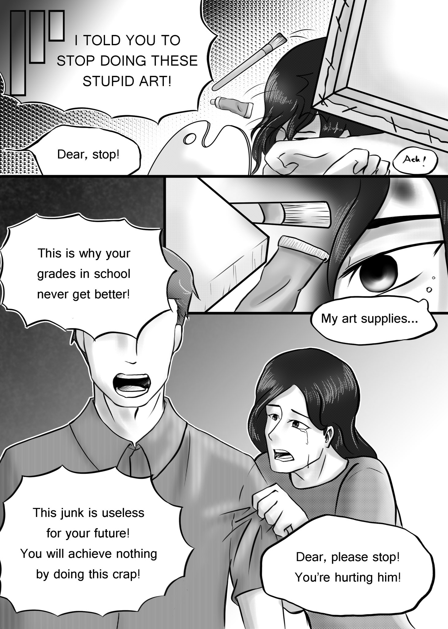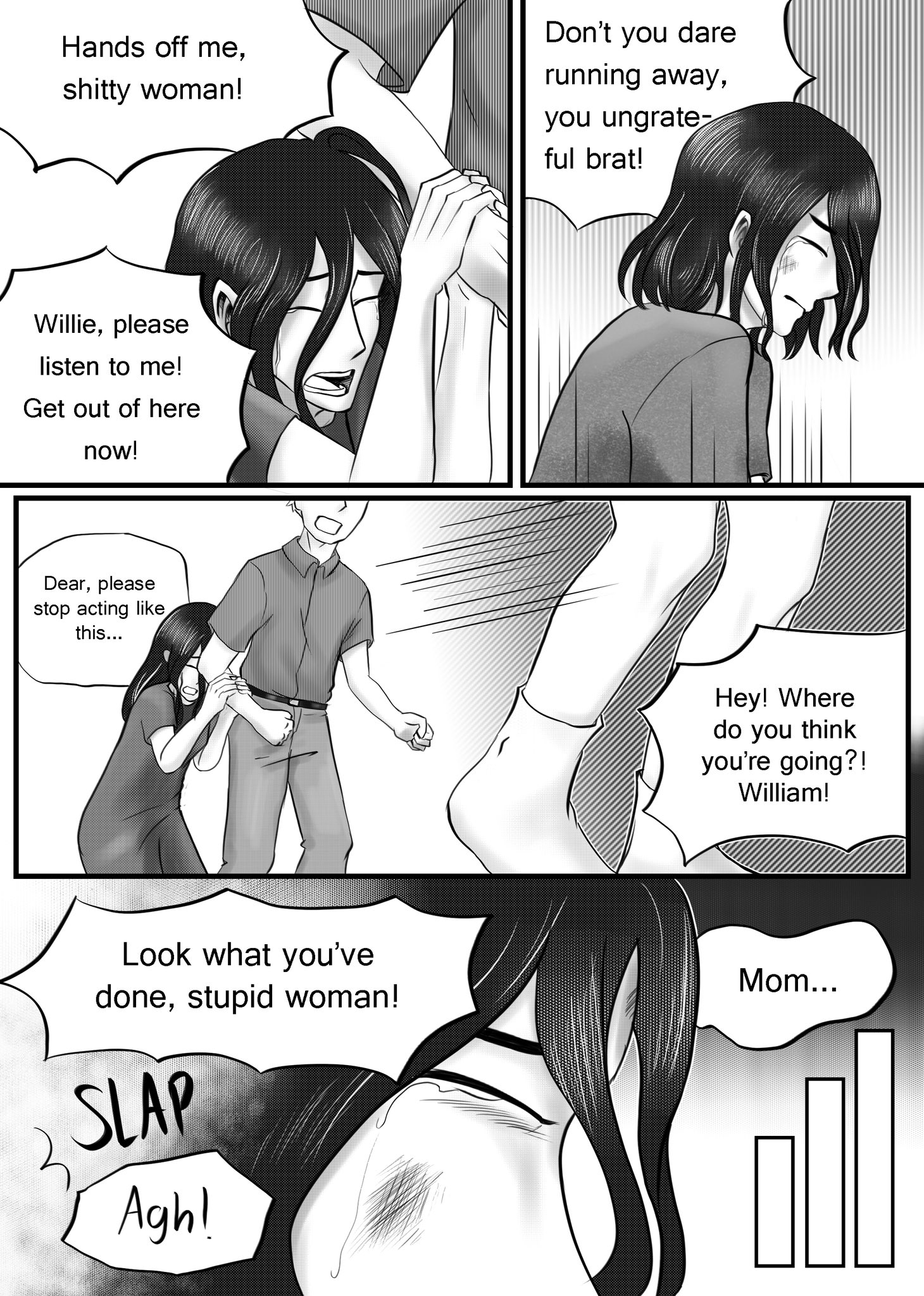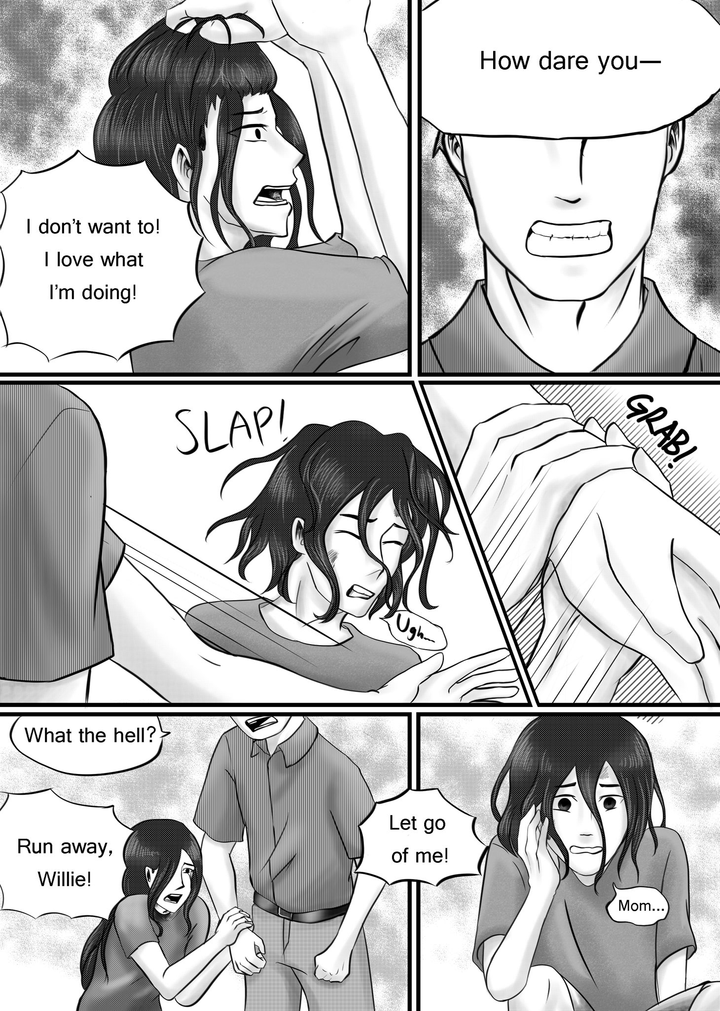 The next part has 4 pages that pictures sensitive scene such as domestic violence and child abuse. It’s a flashback of kid Willie being abused by his father after he found Willie’s art pieces and supplies. The pictures aren’t that graphic, but I just want to make sure everyone is save. So if you’re not comfortable with such topics, please skip the next part and go straight to Chapter 2: Part 1-3. Thank you!!