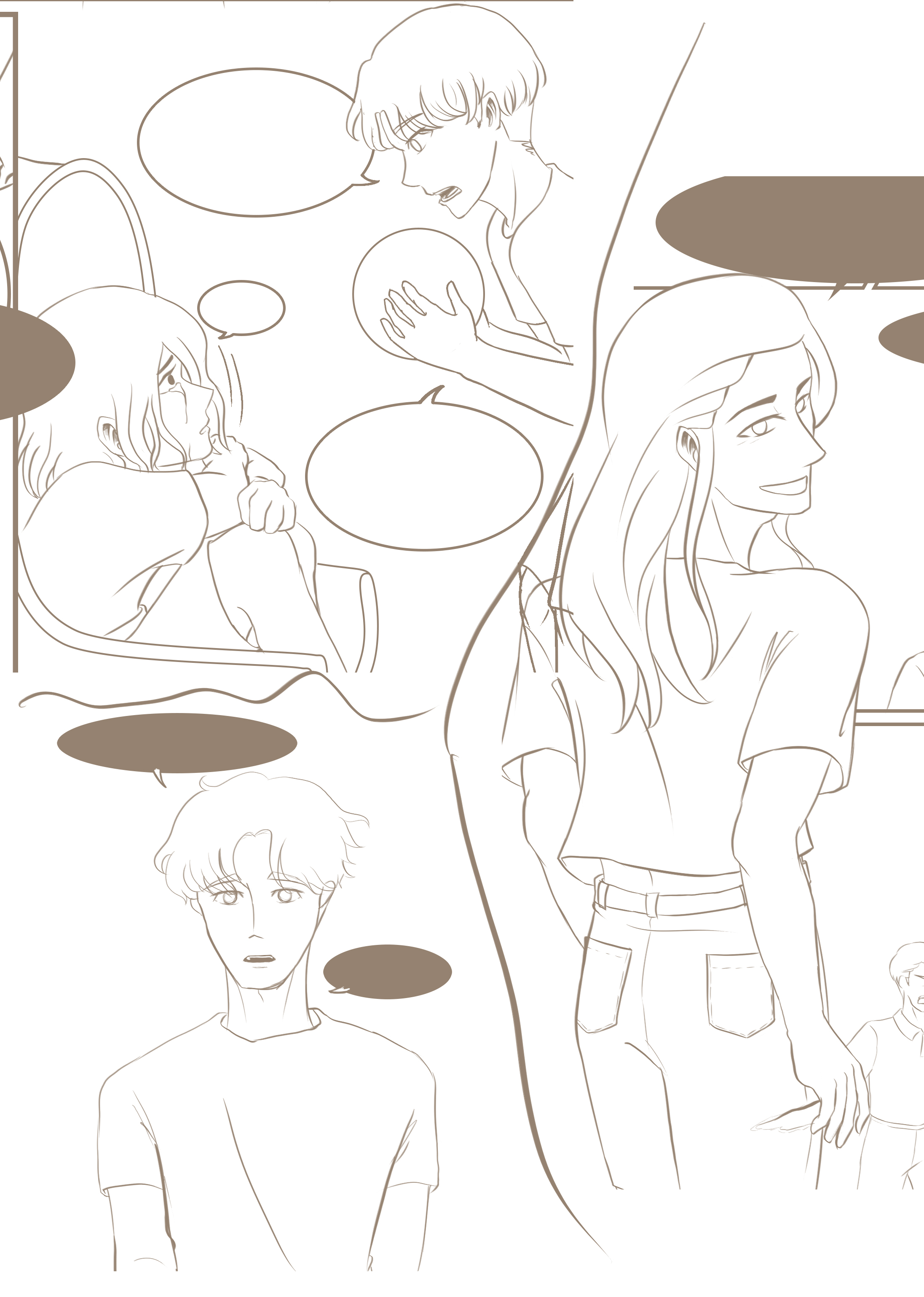 Also, my references are a mix of manga and western comics. Probably leaning more towards manga, but I made it to be read from left to right. So I'm sorry of the panels and speech-bubbles are kind of confusing.