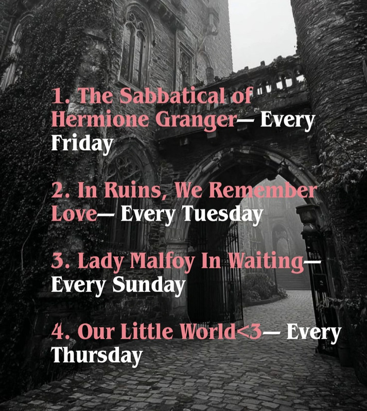 Except… she knew exactly how. She could trace it back to a certain pale blond wizard. Draco Malfoy or Draco, who had stopped being just ‘Malfoy’ long before she’d ever admitted it to herself. Their strange, impossible relationship had begun after the Yule Ball in fourth year. At first they’d argued constantly, the way they always did— sharp words, quicker tempers, every insult thrown like instinct. But somewhere between the bickering and the stolen glances, something shifted. Their arguments softened. She started laughing at things he said. He started looking at her in ways that made her feel warm and breathless and seen. And before she’d even realised she’d crossed the line, Hermione had fallen into those storm-grey eyes, and everything, everything had changed. Over time, what had begun as a strange, reluctant fondness between them grew into something quieter, deeper, and far more dangerous. The sniping softened, the charged silences lengthened, and then one night, they simply stopped resisting. The tension between them snapped, and they crossed a line neither of them had meant to approach.